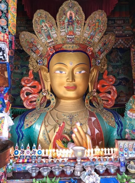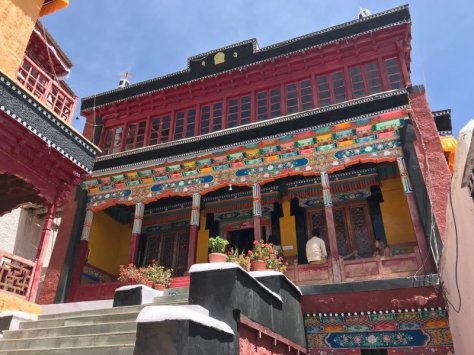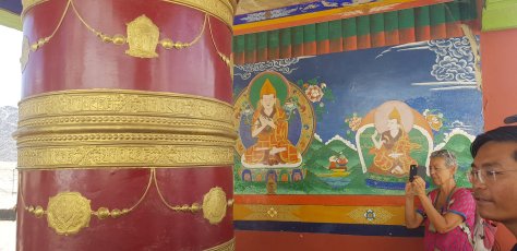 Notre guide Conchok est tibetain et francophone ! Il est très appliqué et doué pour nous raconter l’histoire de son peuple ainsi que le contenu du culte du Bouddha que l On trouve partout dans ce très beau temple haut perché sur un pic rocheux.